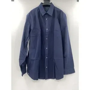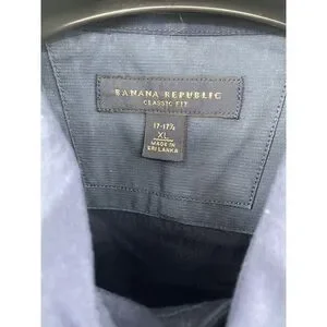 Banana Republic Dress Shirt Navy Classic Fit Guayabera Long Sleeve XL 17/ 17.5