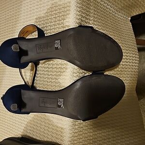 Elegant NAVY Suede (man-made) ankle sandal with back zipper.