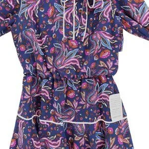 NWT ELIZA J Dress Navy Pink Paisley Floral Blouson Fit Flare Neck Tie Size 6P