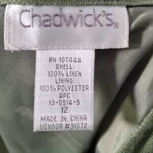 Vintage Chadwick's Olive Green Linen 2 pc. Suit Skirt Jacket Blazer Size 12