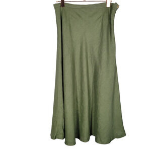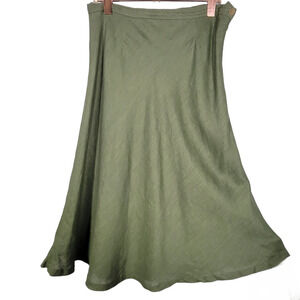 Skirt measurements: Waist: 32"/Length: 34". Flared skirt. 100% Linen. 100% Rayon lining. Side button & zip closure.