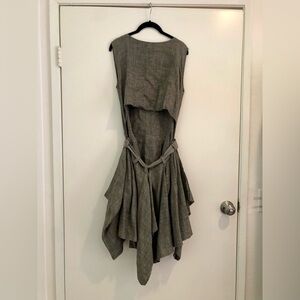 Vintage Issey Miyake Dress Pleated Avant Garde Backless Gray Cotton Hemp M