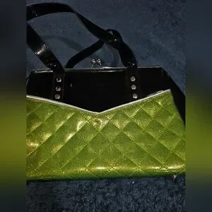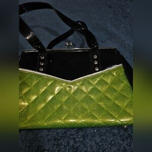 Lux de Ville Lime Green Sparkle Femma Fatale Kiss Lock Purse