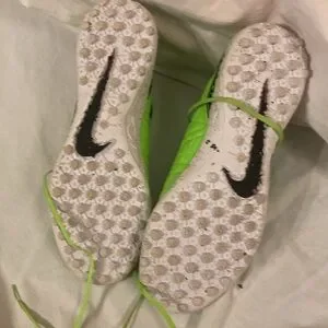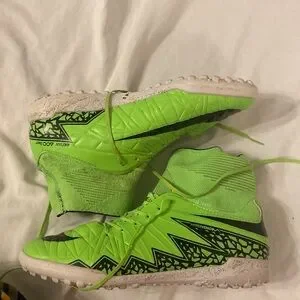 Stand out on the field with these vibrant Nike Hypervenom Turf Soccer Shoes, featuring a high-top design for ankle support and superior traction for turf play. Perfect for any soccer enthusiast, these shoes are in like new condition and ready for action.