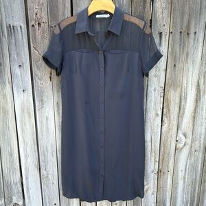 Bailey 44 Silk Mixed Media Shirt Dress Grey M