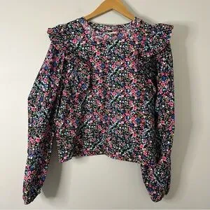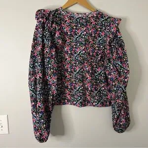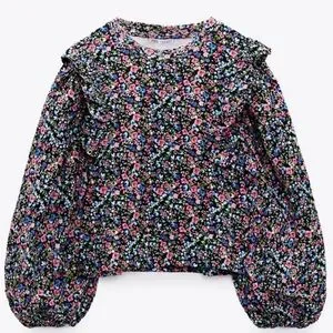 Zara Multi Colored Ditsy Floral Printed Ruffle Puff Sleeve Top