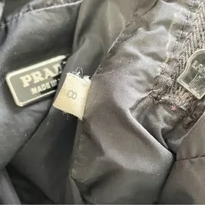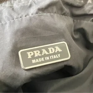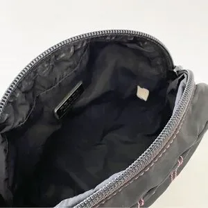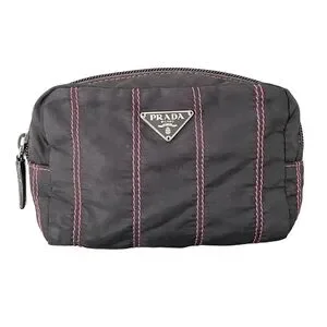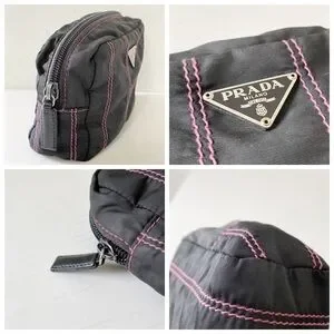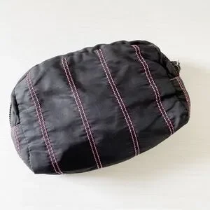 Prada black nylon pink stitching triangle logo medium zip pouch