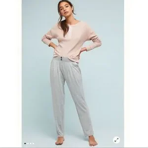 This comfortable lounging pants from Anthropologie will give you relaxed fit and two pockets in front and two back pockets. Button detail. Made out of super soft Jersey material with stretch.