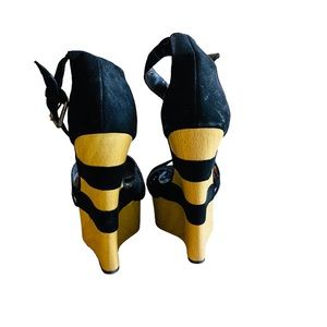 BEBE Y2K Barbiecore Wooden & Leather High Platform Wedge Sandals