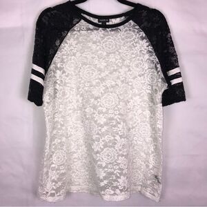 Torrid Black and White Lace Football T-shirt