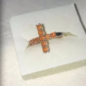 MEXICAN FIRE OPAL CROSS RING 14K ROSE GOLD OVER .925 STERLING SILVER US SZ 7. EXCELLENT CONDITION. NO LOOSE STONES.