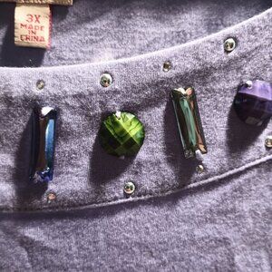 NWT Reba 3X L/S Purple Top with Stones at Neckline
