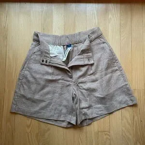 Extra High-Waisted Taylor Linen-Blend Trouser Shorts -- 5-inch inseam. From a pet and smoke free home