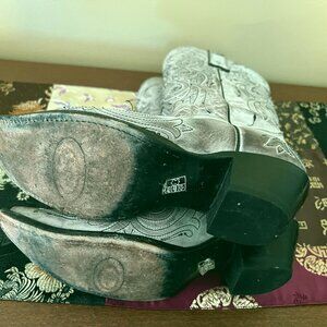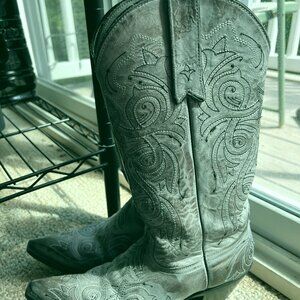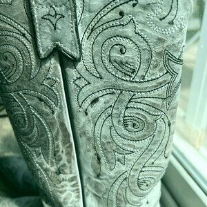 These stylish STERLING RIVER BOOTS are the perfect addition to any cowboy or Western enthusiast's wardrobe. They were purchased in person in Nashville, TN. Very lightly worn. Practically new! With a pointed toe and embroidered accents, these gray leather boots are both fashionable and functional. The boots are designed for women and come in US shoe size 7.The boots are made of high-quality leather and feature a Western style. They are perfect for any casual or formal occasion and will surely make a statement.