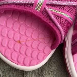Brand new girls water shoes. Velcro straps on back. Has some sparkles ✨. Has a small line on inside toe area as shown in pictures