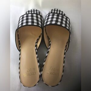 NIB Crown & Ivy Women's Charlotte Slides in Black and White Gingham