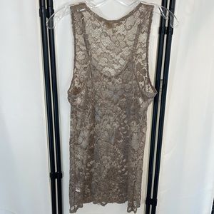BKE Lace Floral Design Tank Top Tan Size Large