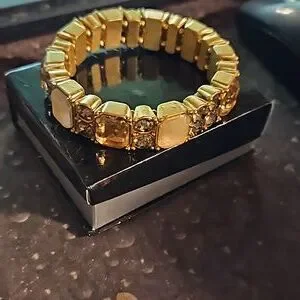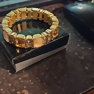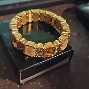 Charcoal Rhinestone Lucite Squares Stretch Bracelet. Excellent Condition.