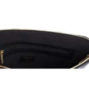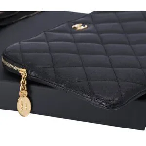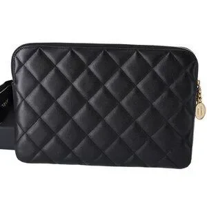 CHANEL Matelasse Clutch Bag Quilted Zip Pouch Black Caviar Leather Full Set