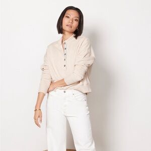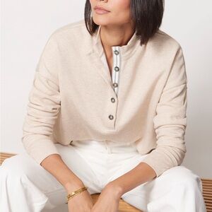 Evereve Taryn Taped Henley Sweatshirt Fleece Pullover S