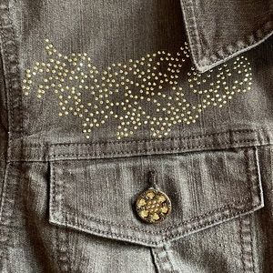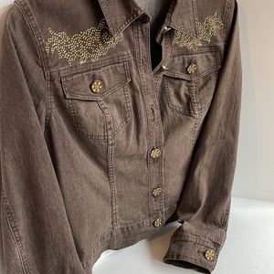 Christina stretch cropped brown denim jacket rhinestone detail size large