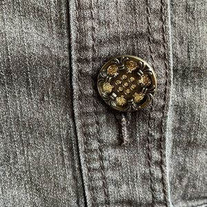 Christina stretch cropped brown denim jacket rhinestone detail size large. Decorative rhinestone buttons Excellent condition