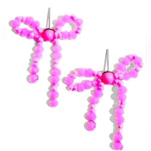High-sheen pink beads in various sizes and baby pink seed beads loop and curl into an elegant, classic bow for a refined centerpiece. Earring attaches to a standard post fitting.