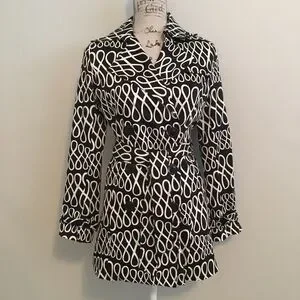 Black and White Trench Coat with Tie