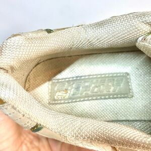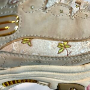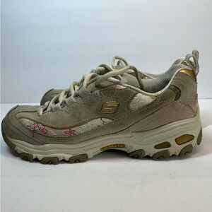 Skechers Sneakers Tan and Cream with Pink Flowers Trimmed in Gold Size 9