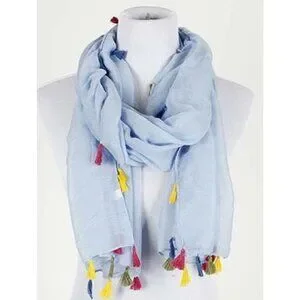 BOHO Light Blue 72" x 28" Sash Scarf Wrap Pashmina Bohemian Tassel Scarf NEW