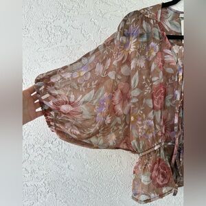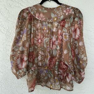 American Rag Blouse Sheer Floral Front Tie XS NWT