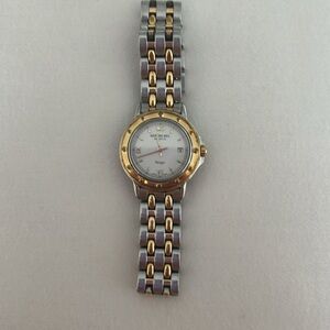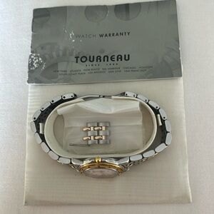 Vintage piece worn 2x that has been stored for a while. The box is in great condition except for the white plate where the watch is wrapped around. It’s a little bend. Authentic and in great condition for a vintage. I bought this piece at the Tourneau store in NYC over 10 years ago. Will get the battery replaced before I ship.