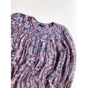 ISABEL MARANT Orion Blue Pink Floral Silk Georgette Mini Tunic Dress, Size 36/XS