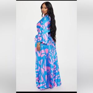 🩷FASHION NOVA NWT SATIN WRAP STYLE NECK, ELASTIC WAIST & PLEATED DETAILS.