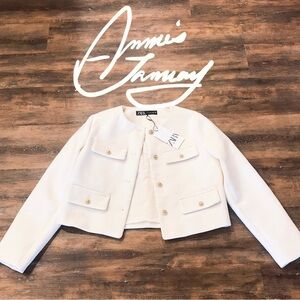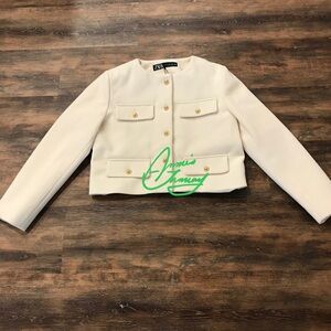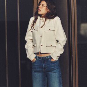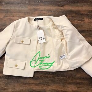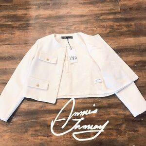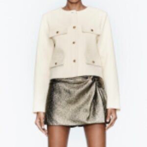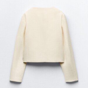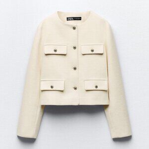 ZARA Women's Cropped Flap Jacket(Ecru, US M, L/EUR M, L)