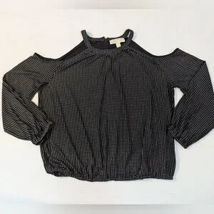 Michael kors cold shoulder smock long sleeve Black rhinestone size PXL.