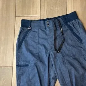 Cross-Flex trim fabric on belt loops, and front pockets, and side welt and ankle gusset