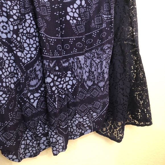 LOVESTITCH Womens Large Bell Sleeve Mixed Media Cross Front Blouse Top NWOT Blue