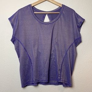 Lululemon Women’s Sweaty Or Not Crop Tee Heathered Iris Flower / Gold Size 8-10