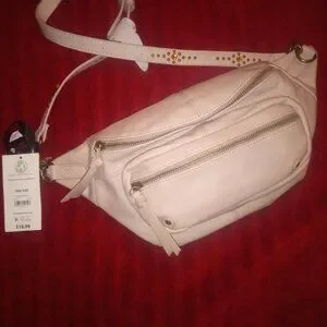 No Boundaries Cafe Tan Colored Casual Fanny Pack or Sling NWT One size Leather type material made with recycled fibers. Two zipper pockets, brass studding, zippers and chain accents. Still contains the brown paper filler in pockets. Retails $18.94 Asking $12 Bundle with other items from my shop and get a discount. Prices are always negotiable.
