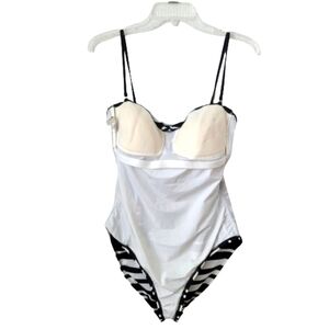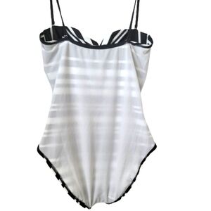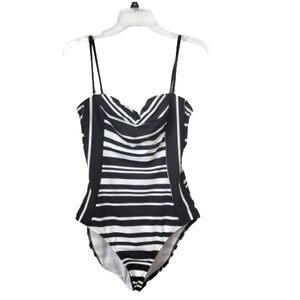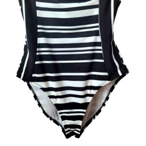 NWOT Kenneth Cole Black & White Stripe 1 Pc Swimsuit, Sz L