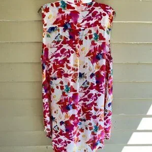 SOFT SURROUNDINGS Summer Blooms Sleeveless Button Front Tunic Blouse