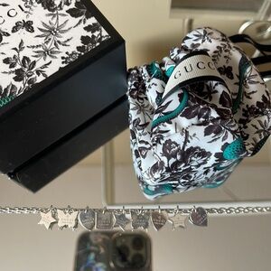 Sterling Silver Gucci necklace Multi charms with Gucci trademark logo Approx. 17”chain length