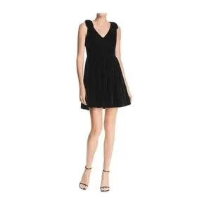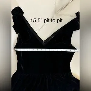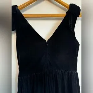 Cutest black velvet little black dress with zipper enclosure on backside, v neck and back, and jumbo bows on the shoulders.