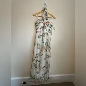 Floral tie neck halter dress