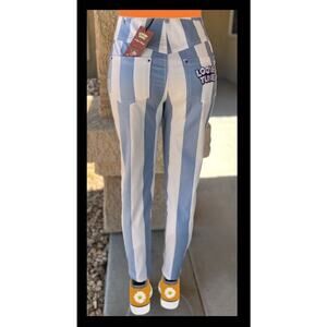 Looney Tunes X Unique Vintage Blue Striped Bugs Bunny Skinny Jeans Size 6-8 M
