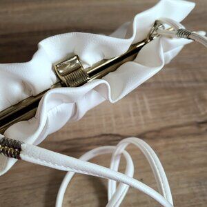 9'' long, 5.5'' tall. Has a strap or might be easily converted to clutch. Super cute.