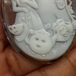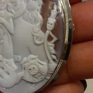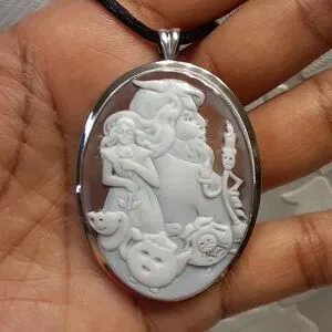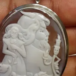 925, Made in Italy, Hand Carved Cameo, Beauty & The Beast. Pendant & Brooch.