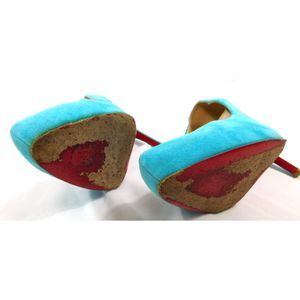 Christian Louboutin Rolando 120 Turquoise Suede Pumps
