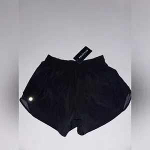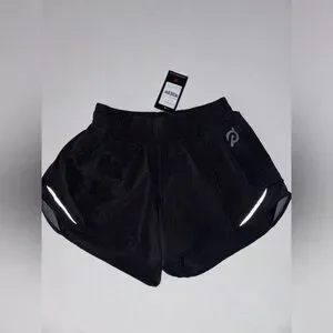Lululemon x Peloton, Brand New With Tags, Sports shorts, color black, reflective glow in the dark stripe on bottom, comfortable, zipper pockets on sides